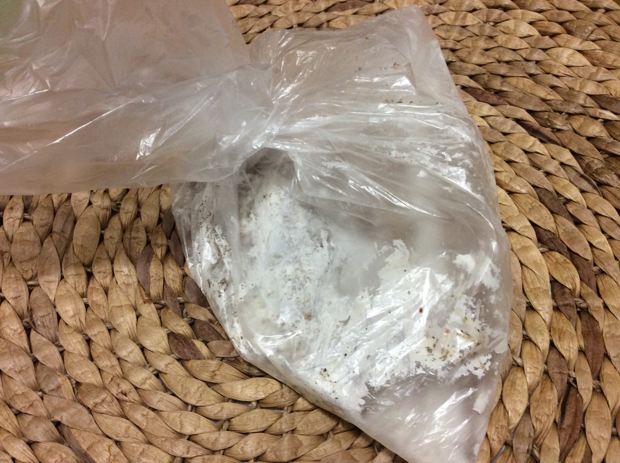 2. ビニール袋に、小麦粉、タイム、バジルを入れ、混ぜておく。