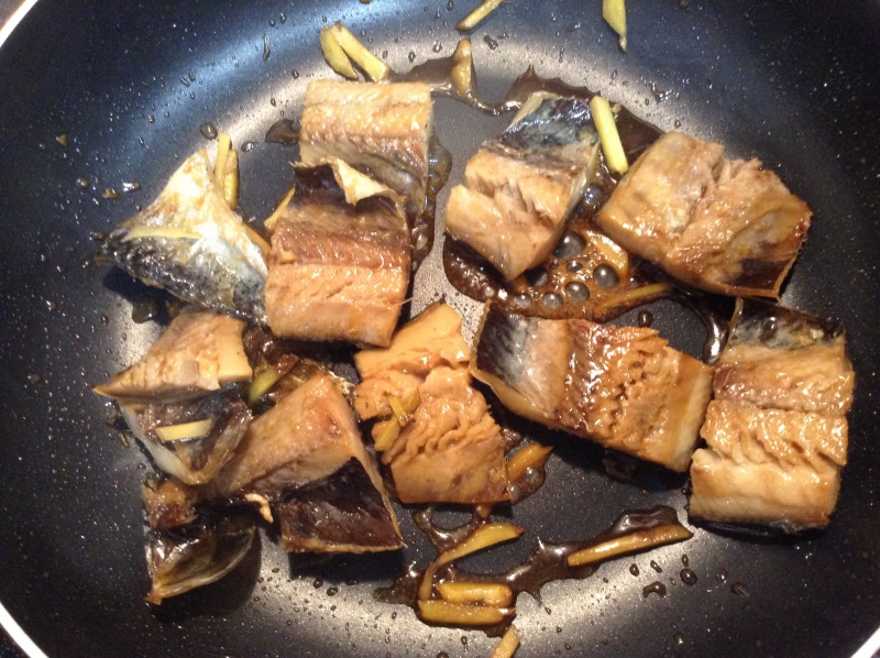 4、フライパンに3を入れて水分がなくなって照りが出るまで煮込みます。 |