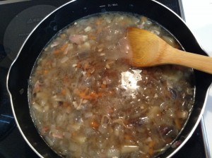 2、豚ひき肉に火が通ったら水を入れて煮込んでいきます。