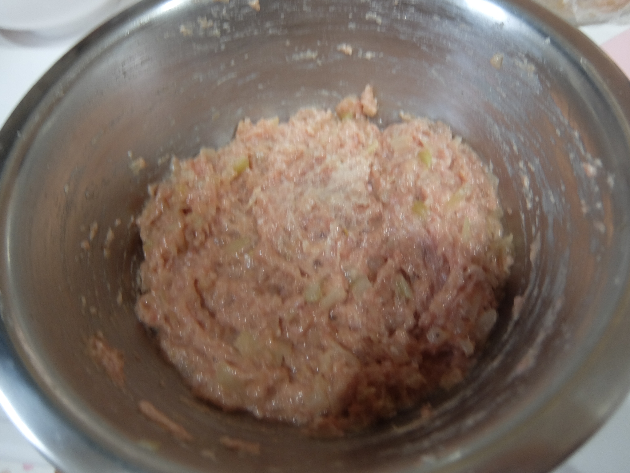いつもはパンに牛乳を入れていますがコンソメスープを代用して作ってみました。柔らかめの生地ですがその分ジューシーでうまみがたっぷりです。赤ワインをソースに使って本格的な味を目指しました。