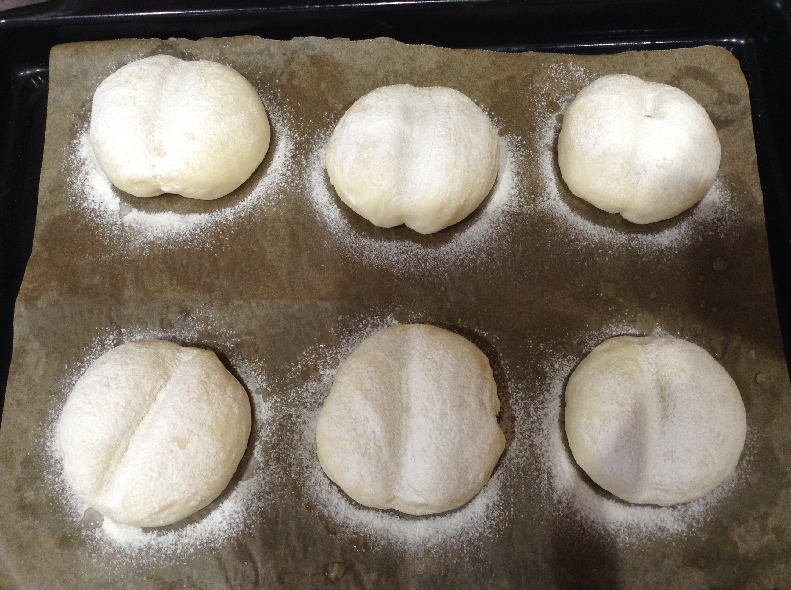 生地作りでサラダ油を入れてからこねるのは結構力が要りますが、休みながら楽しくこねましょう!だんだんまとまってくるのは嬉しいものですよ☆箸で押し当ててくぼみをつくりますが、2次発酵後戻ってしまうことがあります。