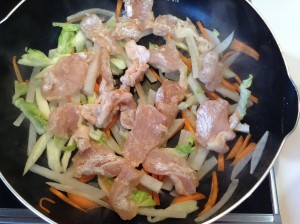 キャベツの芯は火が通りにくいので最初に炒めましょう。
