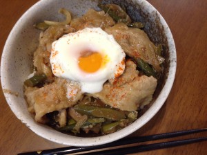 ガッツリと食べてパワーを付けたいときにどうでしょうか?豚肉とニンニクの芽に甘辛いタレに馴染み温泉たまごとチーズがとろ~り絡まってとても美味しいです!材料2人分