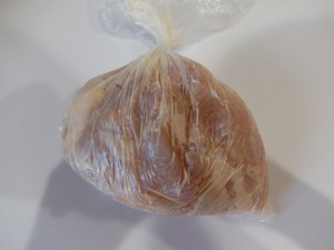 1、もも肉は一口大に切りビニール袋に入れます。マヨネーズと塩コショウと醤油と片栗粉と酒を入れます。 |