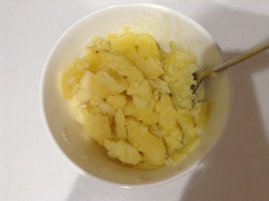 5、じゃがいもをレンジで加熱して柔らかくして粗くつぶします。