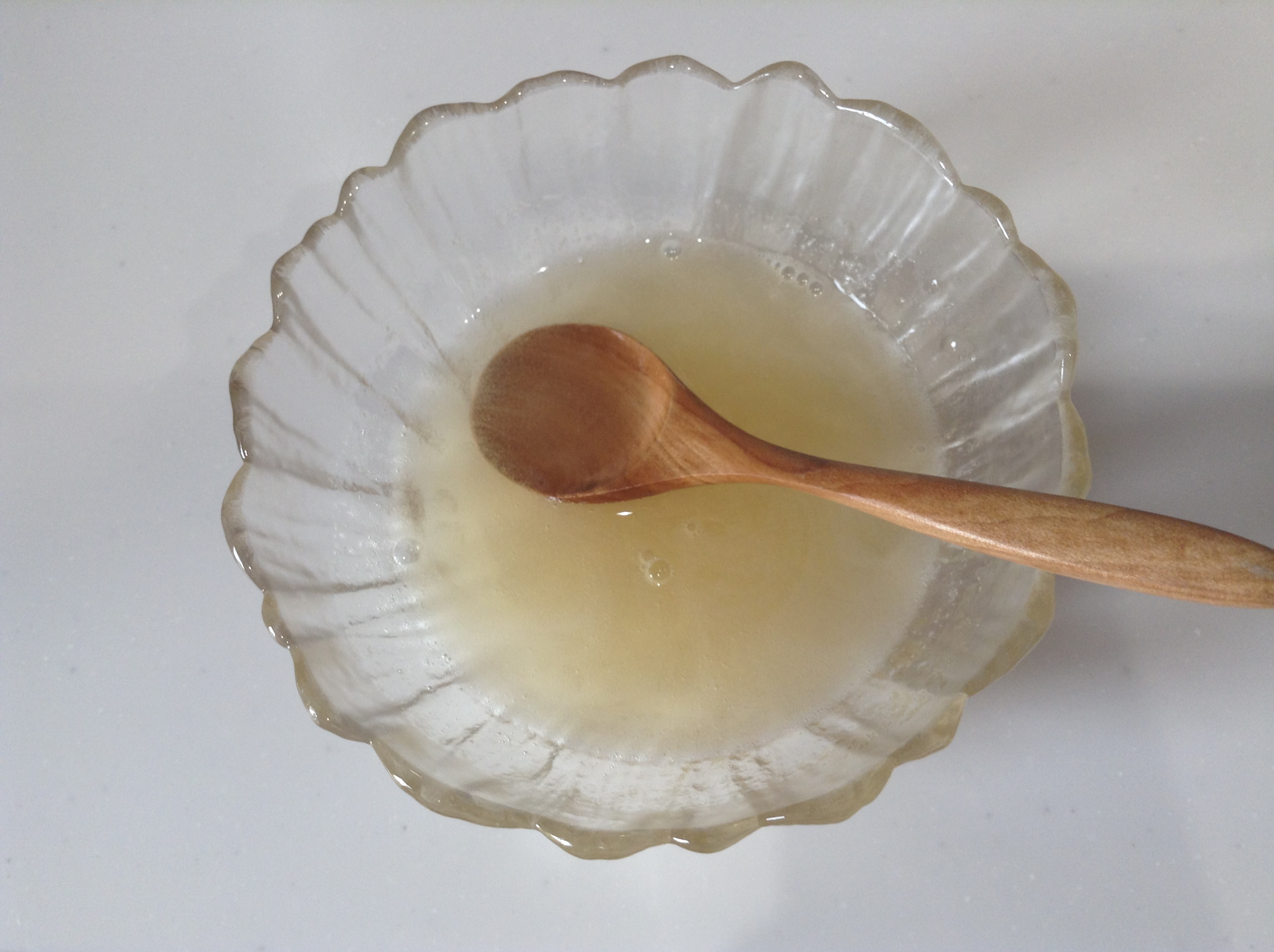 1、ゼラチンは大さじ2の水をいれてふやかしておきます。 |