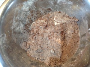 1、ボウルに薄力粉、ココア、ベーキングパウダー、砂糖、塩を入れて混ぜます。